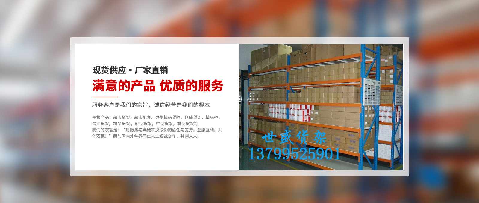 泉州世盛教育裝備有限公司專(zhuān)注于倉(cāng)儲(chǔ)物流設(shè)備的設(shè)計(jì)、生產(chǎn)和銷(xiāo)售,我們本著“團(tuán)結(jié),創(chuàng)新,服務(wù),誠(chéng)信”的經(jīng)營(yíng)理念經(jīng)過(guò)多年的經(jīng)驗(yàn)積累,成為福建省倉(cāng)儲(chǔ)設(shè)備制造的典范。在閩南地區(qū)擁用廣泛而穩(wěn)固的客戶(hù)基礎(chǔ),主營(yíng)產(chǎn)品:超市貨架,超市配套,泉州精品貨柜,倉(cāng)儲(chǔ)貨架,精品柜,晉江貨架,精品貨架 ,輕型貨架,中型貨架,重型貨架等…