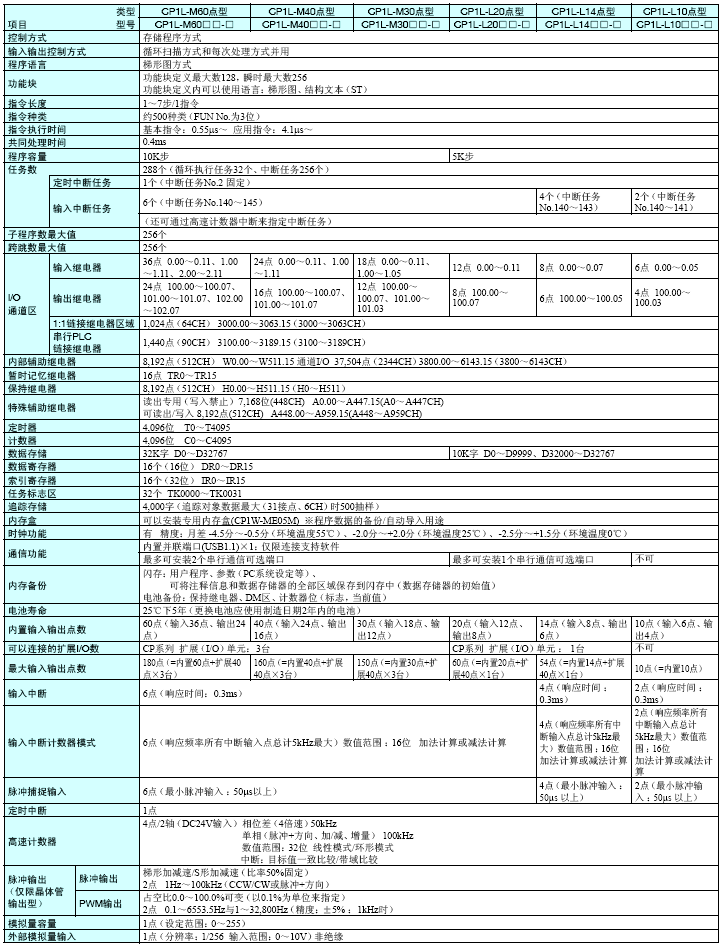 歐姆龍PLC可編程控制器CP1L系列產(chǎn)品參數(shù):