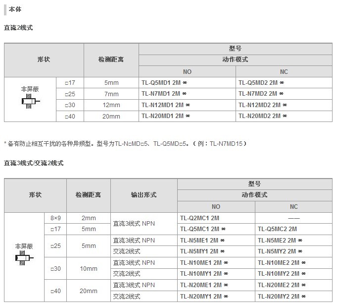 歐姆龍接近傳感器TL-N/Q/G 系列接近開關(guān)產(chǎn)品參數(shù):