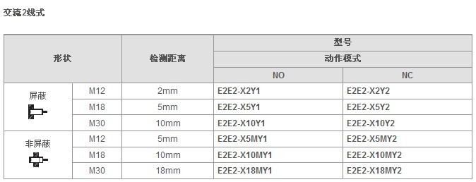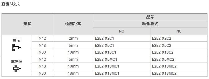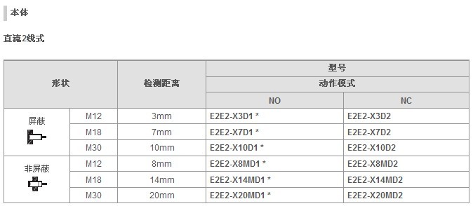 歐姆龍接近傳感器E2E2系列接近開關(guān)型號(hào):