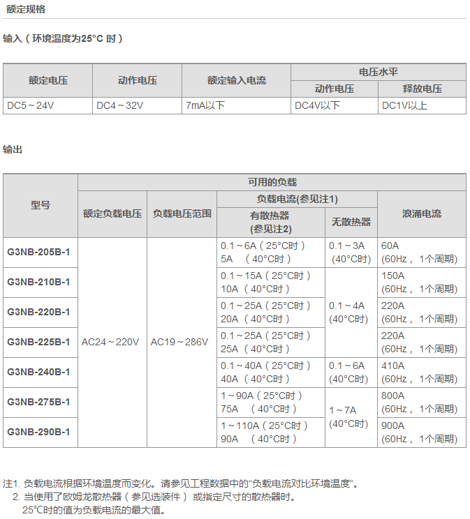 歐姆龍繼電器G3NB系列固態(tài)繼電器產(chǎn)品規(guī)格: