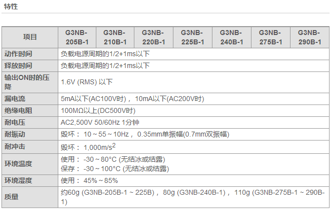 歐姆龍繼電器G3NB系列固態(tài)繼電器產(chǎn)品特性: