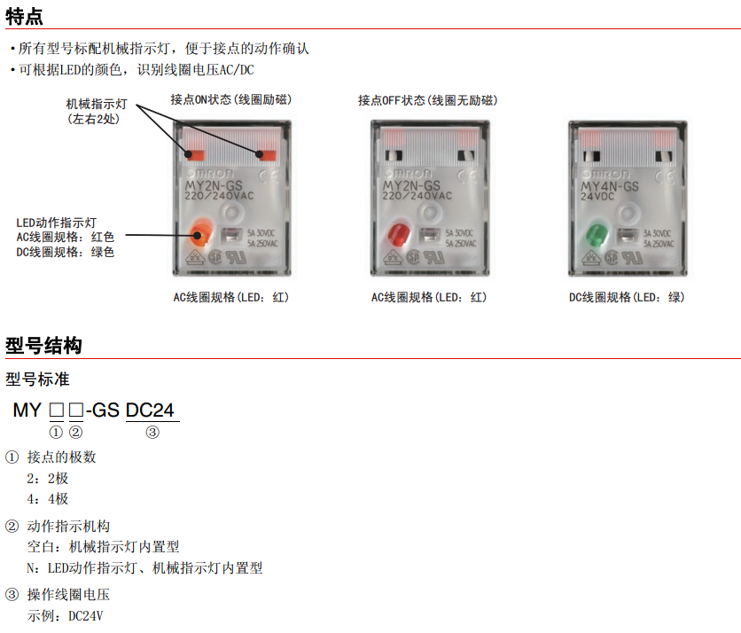 根據(jù)LED動(dòng)作指示燈的顏色,可識(shí)別AC線圈規(guī)格、DC線圈規(guī)格
