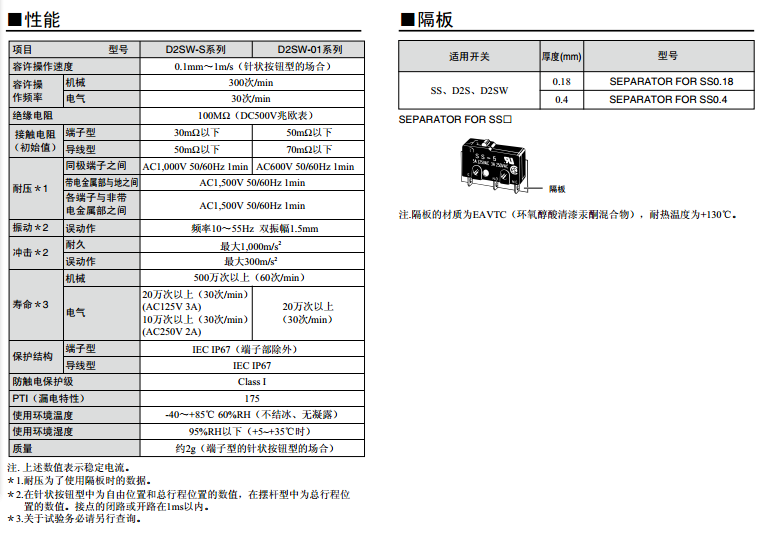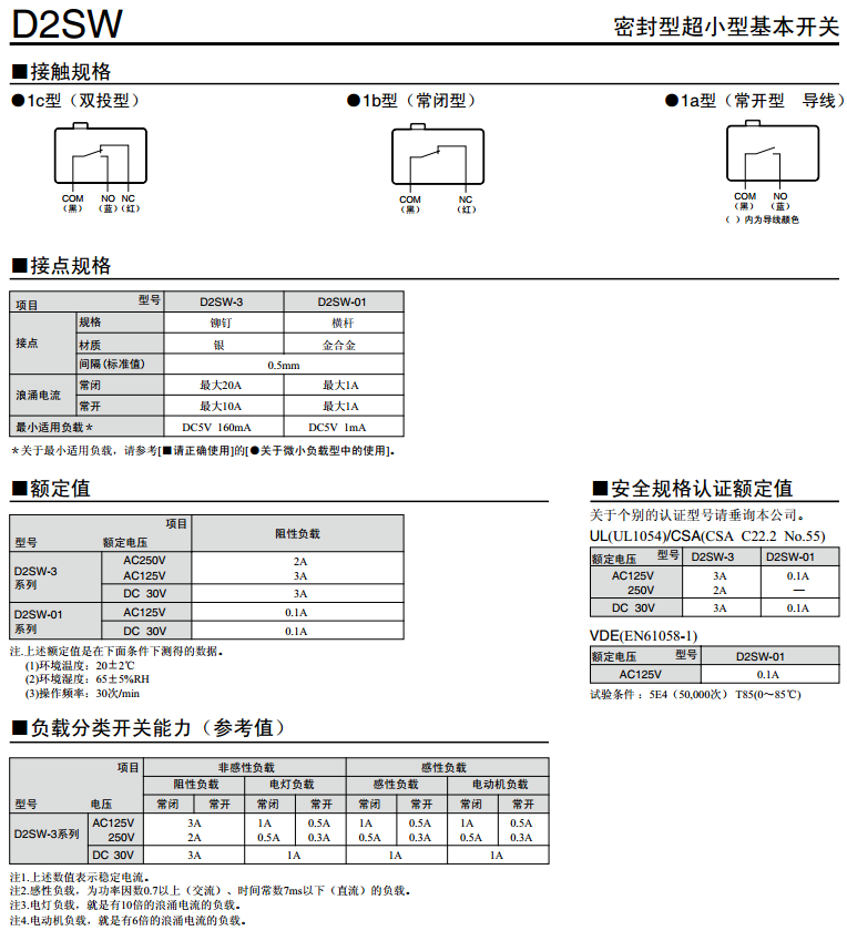 歐姆龍微動開關D2SW系列產(chǎn)品參數(shù):